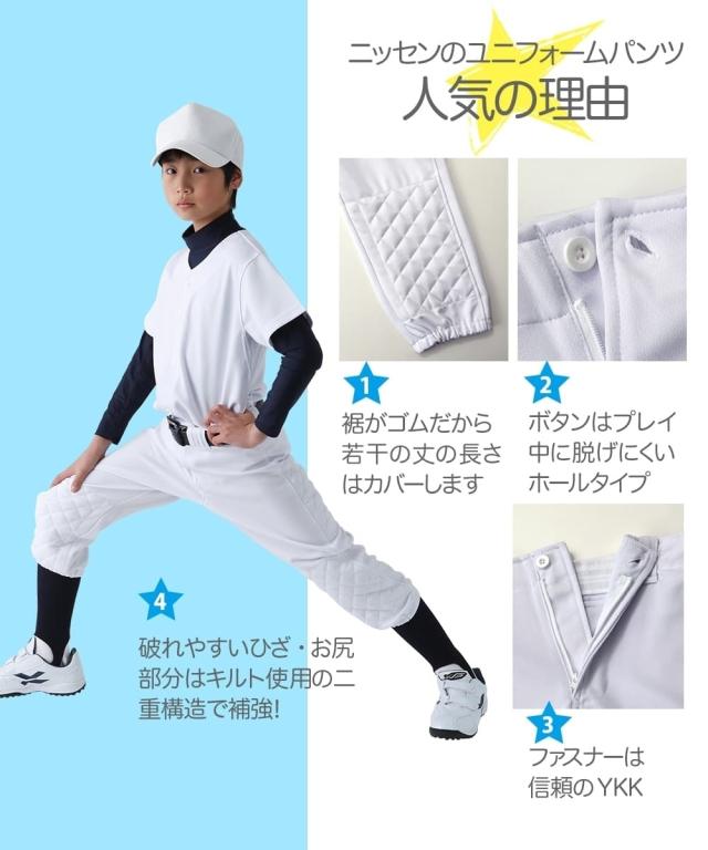 [keyword] 子供服 子供用品 女の子 女 女児 キッズ 小学生 中学生 高校生 男の子 男 男児 [comment] 本格仕様の野球パンツ キルティングがおしり&ひざを優しくガード!厚みのある丈夫な素材が嬉しい。