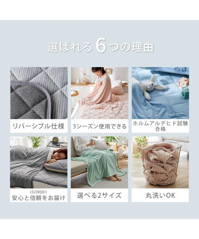 大人気の冷感リバーシブルシリーズにクールケット登場!両面サラリとした肌ざわりでリバーシブル仕様なので、長くお使い頂けます。