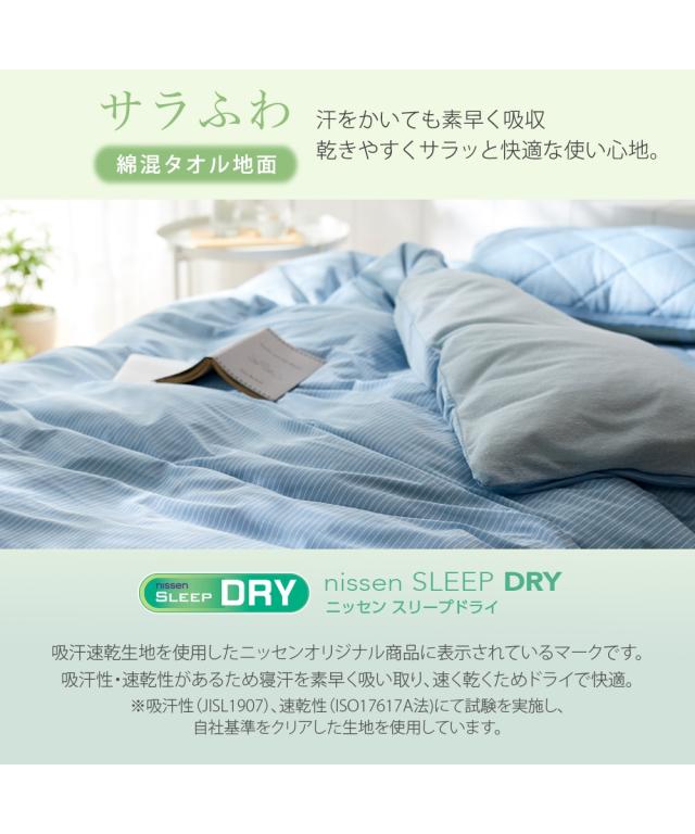 布団カバー 接触冷感 × 綿混 タオル地 吸汗速乾 リバーシブル 両面 掛け布団 シングル 夏 ひんやり 寝具 寝装 ニッセン nissen