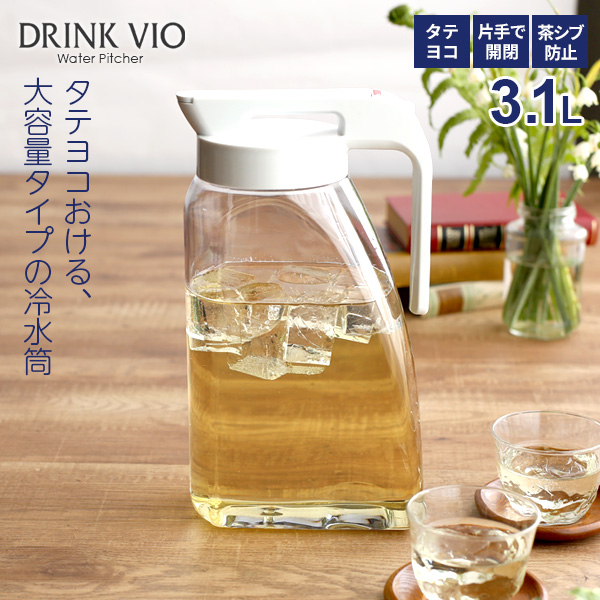 麦茶ポット ドリンク・ビオ 3.1L 3100K | 大容量 冷水筒 ピッチャー ワンプッシュ開閉 約3L 耐熱 横置きOK 熱湯OK ポット 冷茶 麦茶 洗いやすい 野菜室 タテヨコ置ける