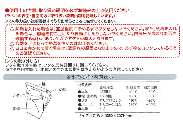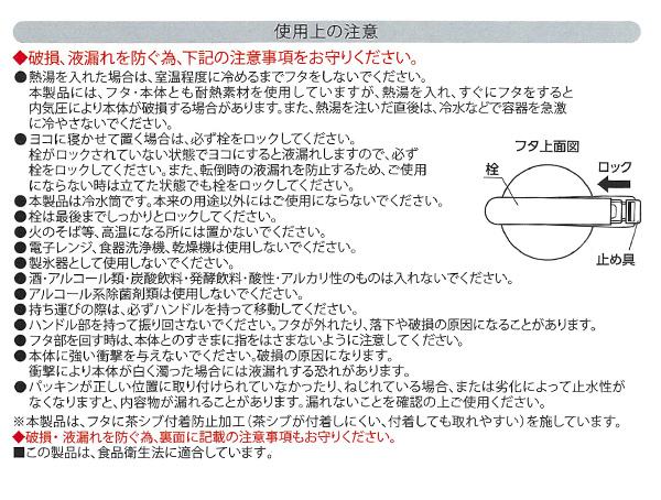 ご注意熱湯を入れた場合は、充分に冷ましてからフタを閉めてください。