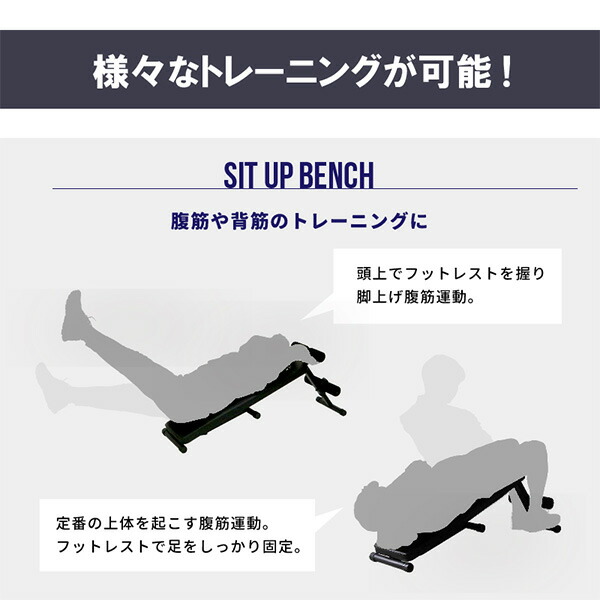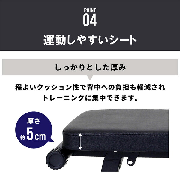 | 商品説明 | ●身体を引き締め鍛えるなら、2WAYベンチ自宅でトレーニング! ●シットアップベンチとフラットベンチの贅沢な2WAY仕様!この1台あれば自宅トレーニングの充実度がアップ ●自粛生活が続く中、健康志向が高まり自宅トレーニングを始める人が増加中 ●自宅トレーニングのメリット ・好きな時間にできる ・外出しなくてよい ・人目を気にせず思う存分運動できる ・ジムへ行くなどの移動時間がかからない ・人との対面の心配がない ●運動のレベルや目的によって4段階の角度調節ができる ●耐荷重90kg!大柄な方やダンベルを使ったトレーニングを挑戦したい方にも安心設計 ●折り畳めばコンパクトに収納できる。インテリアも生活同線も邪魔しない ●しっかりとした厚さ5cmの運動しやすいシート。適度なクッション性で背中への負担も軽減され、トレーニングに集中できる ●98cmの最適なシートサイズ ●高品質なレザー調シート。汗をはじき、滑り難く、汚れを拭き取りやすい ●直径約7cmの厚みのあるフットレスト。足や手にフィットする柔らかなクッション素材を使用 |