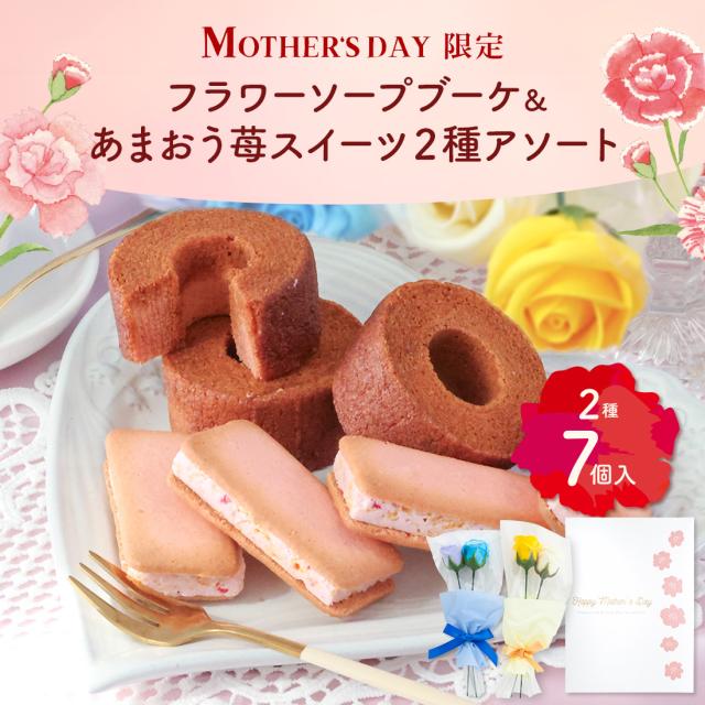 母の日 ギフト フラワーソープブーケとあまおう苺スイーツ2種アソート | 花 プレゼント ギフト 贈り物 スイーツ ギフト 焼き菓子 送料無料<宅急便発送> Agift