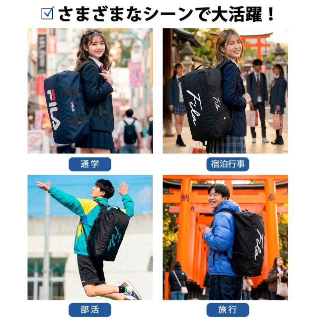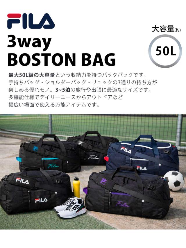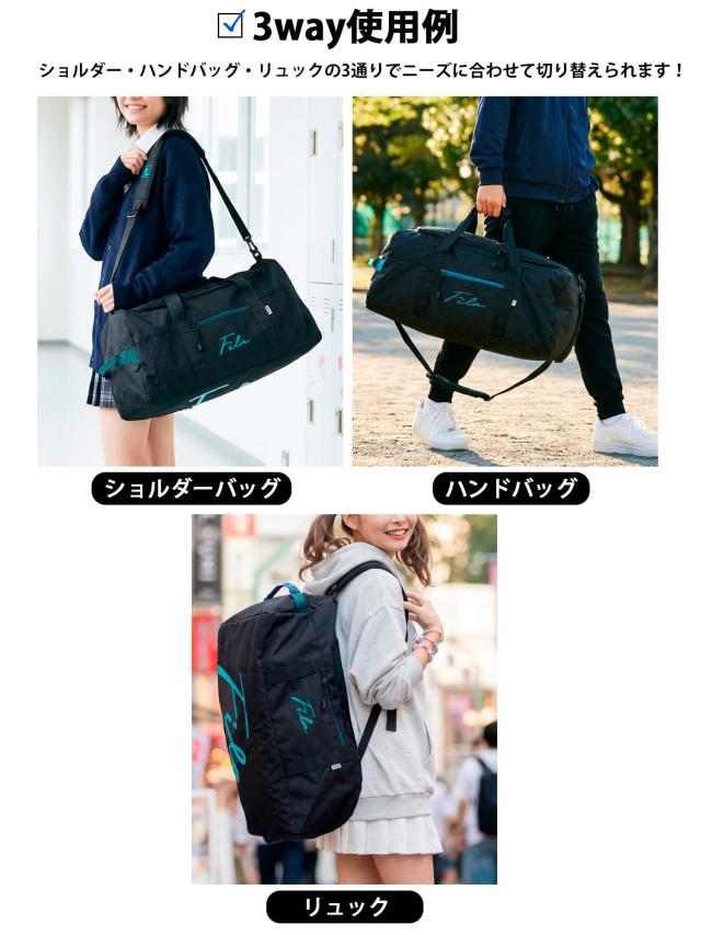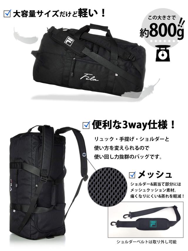 FILA フィラ ボストンバッグ メンズ レディース リュック 大容量 ショルダーバッグ 3way スポーツバッグ 旅行 修学旅行 林間学校 部活 かわいい 男子 おしゃれ 47L トラベルバッグ 斜めがけ 軽量 合宿 高校生 中学生 小学生 大人 outfit ポイント消化