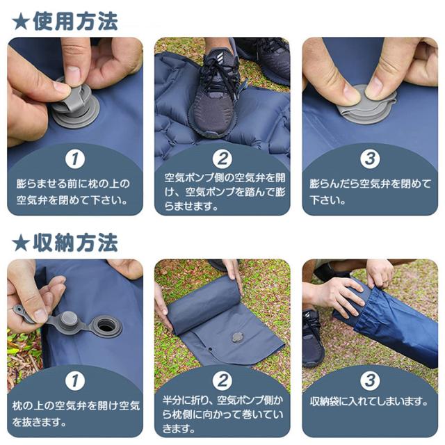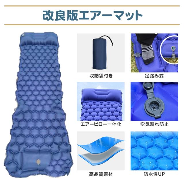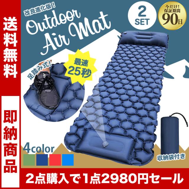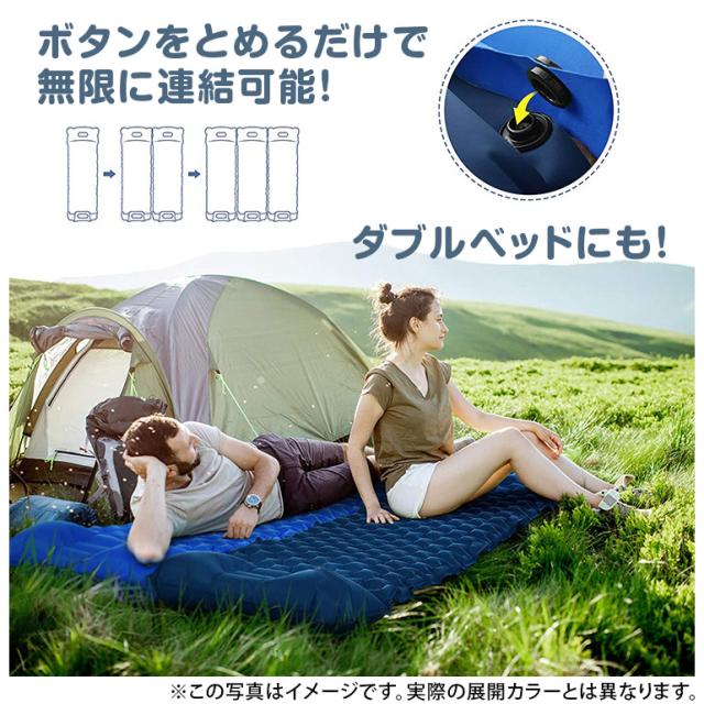 2点セット エアーマット エアーベッド 簡易ベッド キャンプ 災害 防災 コンパクト 車中泊 足踏み式 枕付き 無限連結可能 手動空気入れ TPU生地 アウトドア 送料無料