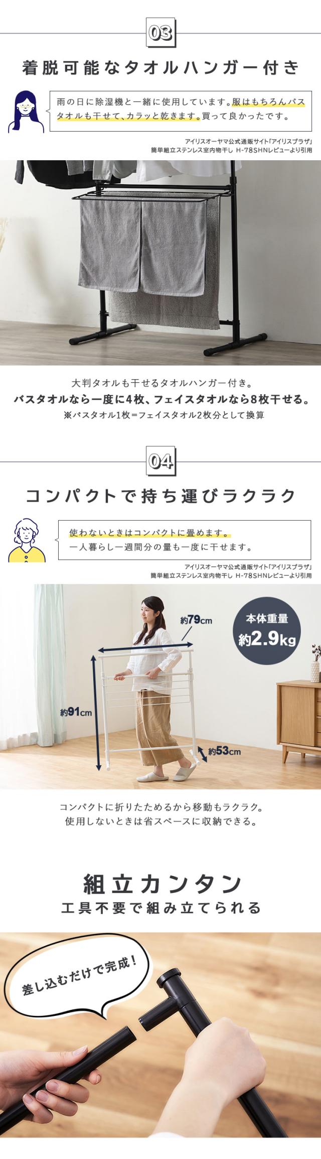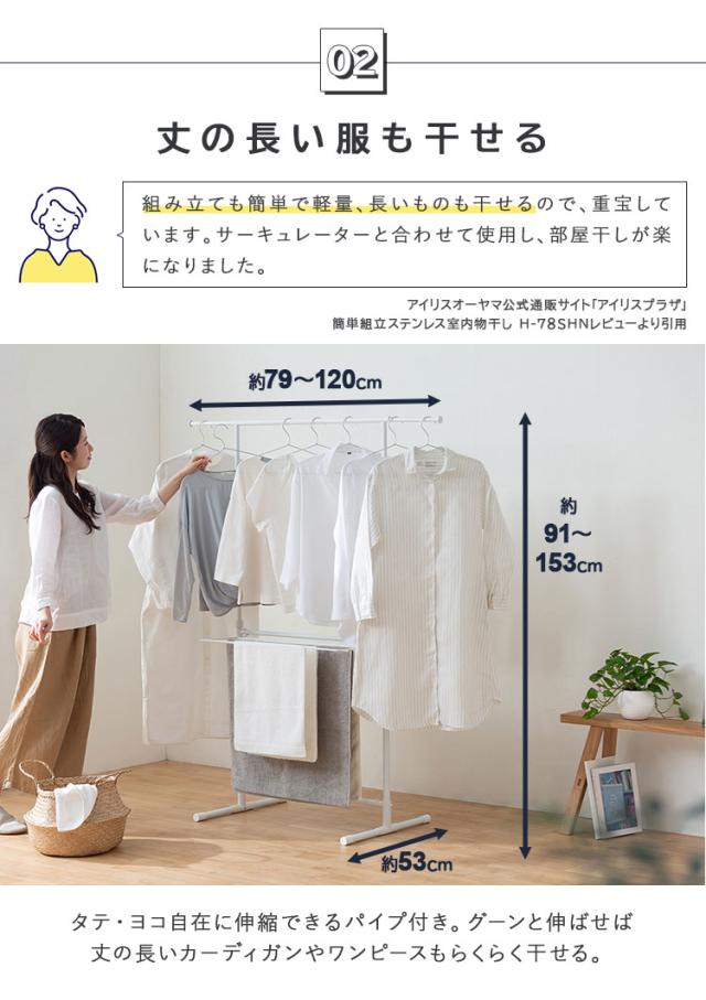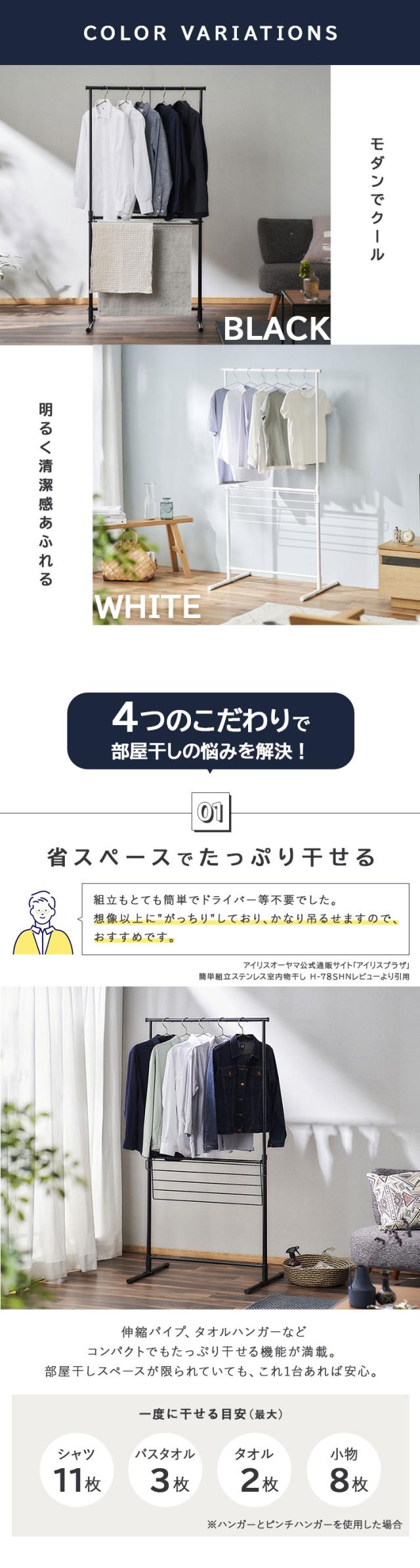 洗濯物干し 室内 折りたたみ コンパクト 収納 おしゃれ 伸縮 ロング丈 組立簡単 工具不要 タオルハンガー 物干し 室内 部屋干し 梅雨 除湿機 サーキュレーター 花粉 一人暮らし スタイル物干し 白 黒 アイリスオーヤマ STMH-790 *