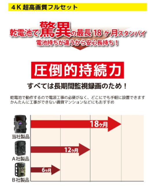 防犯カメラ セット価格 長期保証 電池で18ヶ月監視 かんたん設置