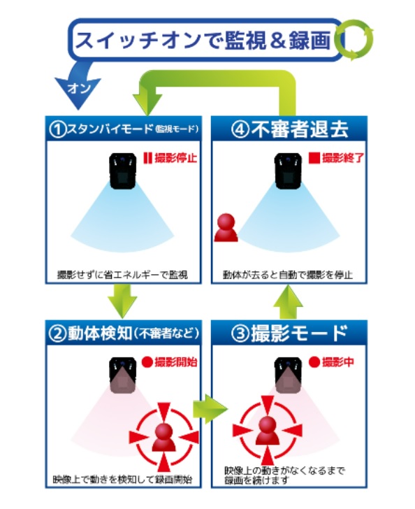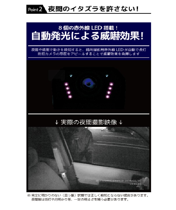 | 赤外線LED(IR) | 8灯(明るさを検知して自動点灯) |