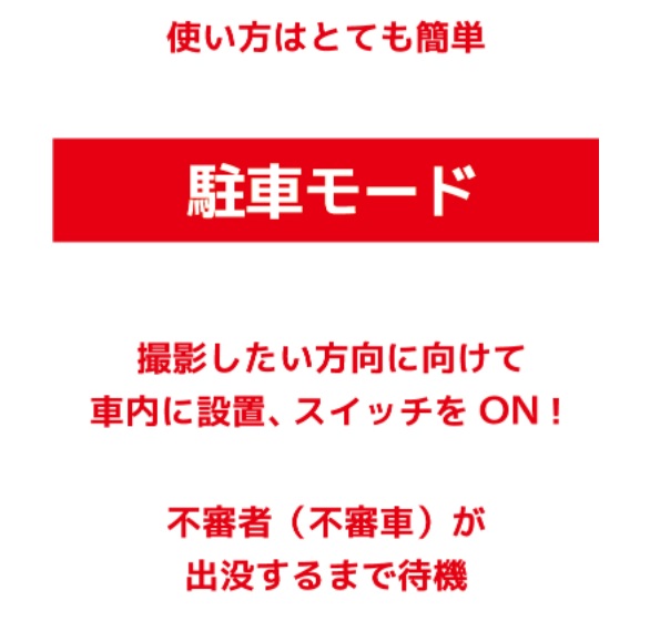 - 通勤用に借りている駐車場が心配なので、購入しました。 昼間はバッチリ撮れていますが、街灯のない安い駐車場なので夜間は何が撮れているのか、判断しづらいです。 ですが購入して良かったと思います。 車のガラ...