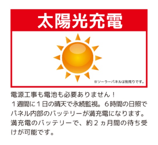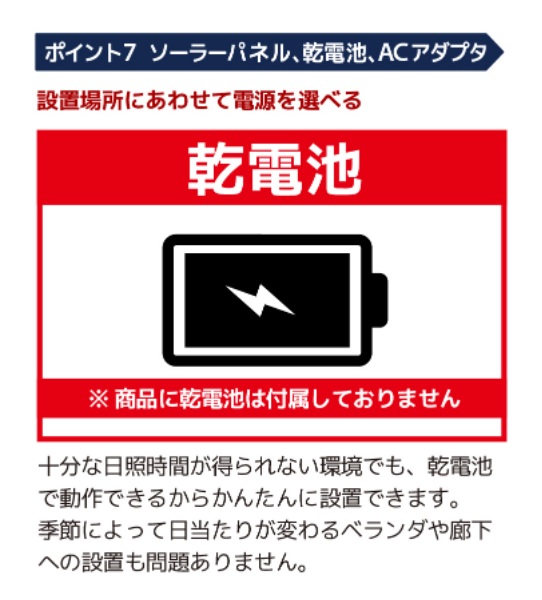 単三電池で駆動。工事不要で誰でも簡単に設置できます。