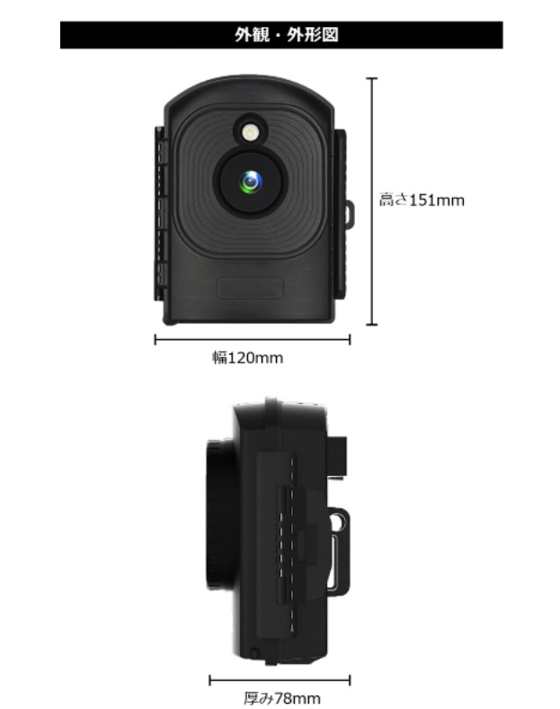 幅120mm x 高さ151mm x 厚み78mm(突起部を除く)