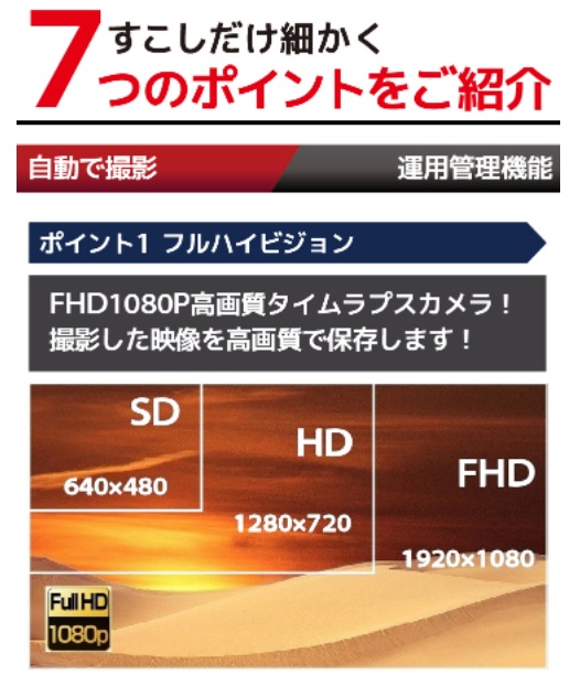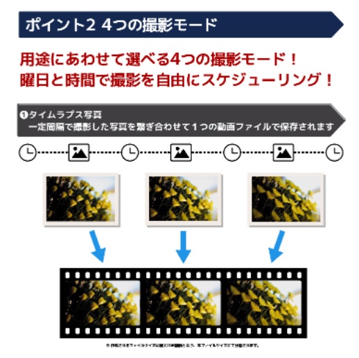 お手軽にハイクオリティなタイムラプス機能をご利用頂けます。