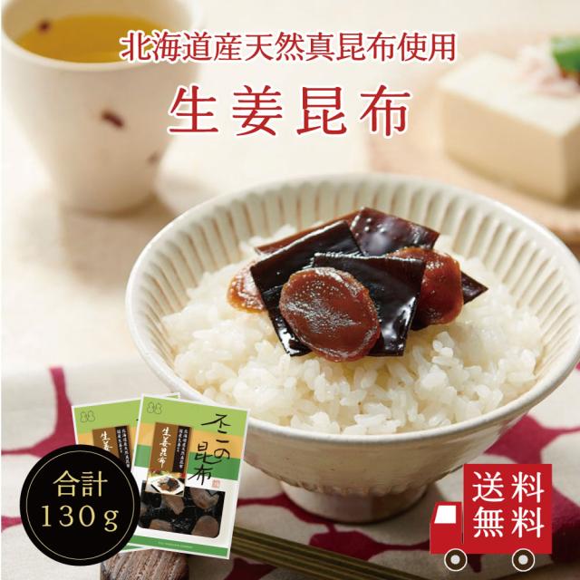 【送料無料】 生姜昆布 65g 2個セット 不二の昆布 つくだ煮 昆布 佃煮昆布 昆布佃煮 ご飯のお供 ふりかけ お弁当 おにぎり おうちごはん 手土産