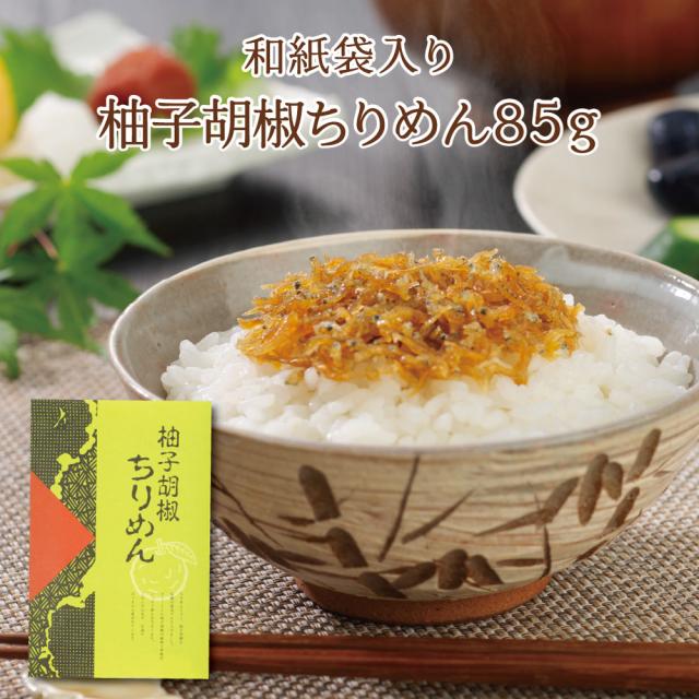 柚子胡椒ちりめん85g(和紙袋入り) 不二の昆布 ちりめん佃煮 柚子胡椒 ピリ辛 惣菜 おにぎり ふりかけ お弁当 お試し 家飲み 朝ごはん ご飯のお供 プチギフト プレゼント 帰省土産 お土産 御礼 お礼 挨拶 引越 退職 米 お米