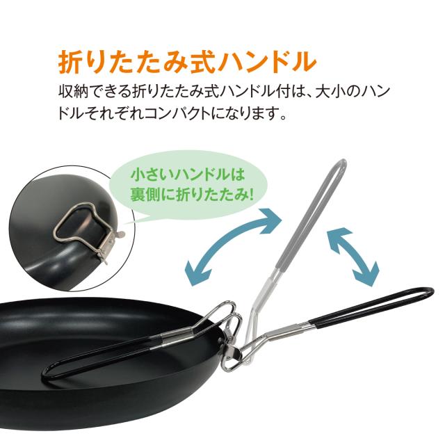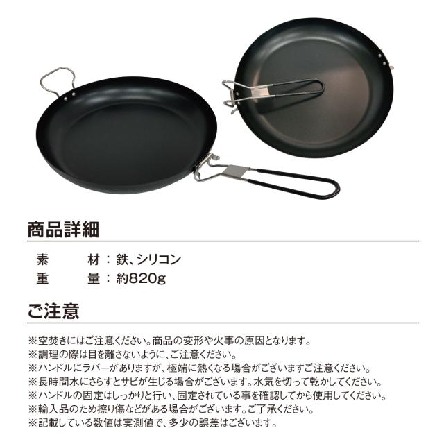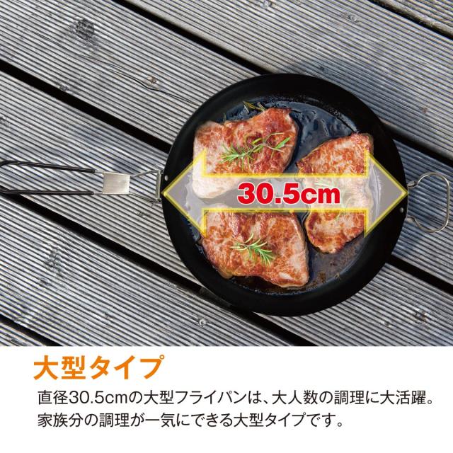 フライパン アウトドア クッカー 折りたたみ式 両手持ち 大型 30cm 調理 料理 キャンプ バーベキュー BQQ frypan01