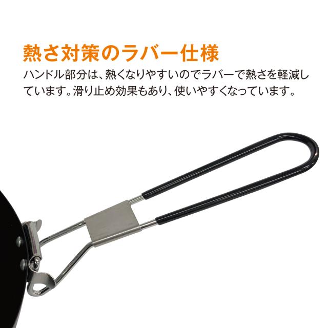 【熱さ対策のラバー仕様】ハンドル部分は、熱くなりやすいのでラバーで熱さを軽減しています。滑り止め効果もあり、使いやすくなっています。