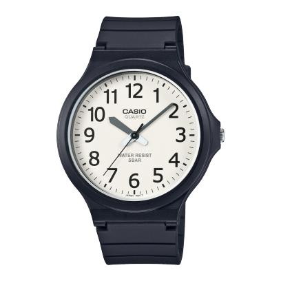5気圧防水機能を備えたアナログウオッチです。ワイドでシンプルなフェイスがコーディネートに合わせやすいデザインです。※ 「MW-240-7BJF」 から型番が変更となりました。商品の仕様に変更はありません。