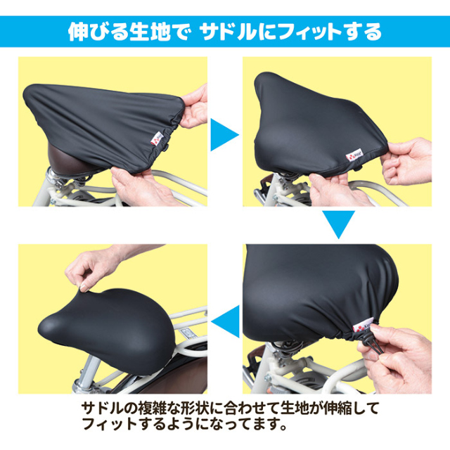 本製品は、被せやすいストレッチ生地を使っているカバーで、サドルの形状にピッタリとフィットしてくれます●見た目もシンプルな単色になっているので、元々付いていたかのような違和感の無いデザインです。表面生地には撥水加工を施してあります。※表生地は耐水圧1000mmをクリアした防水性能となっておりますが、長時間の大雨等により縁の縫い目等から浸水する場合もございますので、ご注意ください。