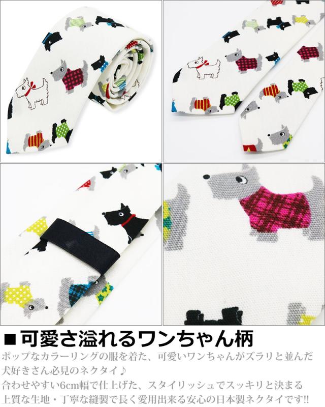 犬柄 ネクタイ 日本製 6cm幅 細め ナロータイ 紳士 メンズ ビジネス ユニフォーム スリムタイ ネクタイ