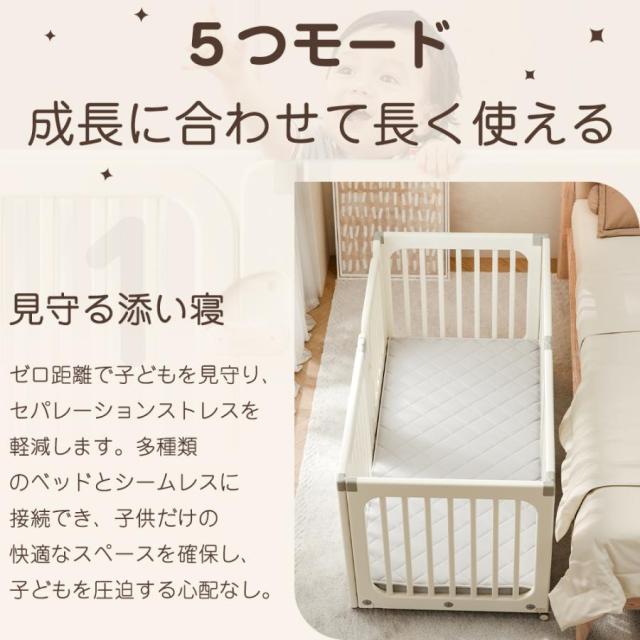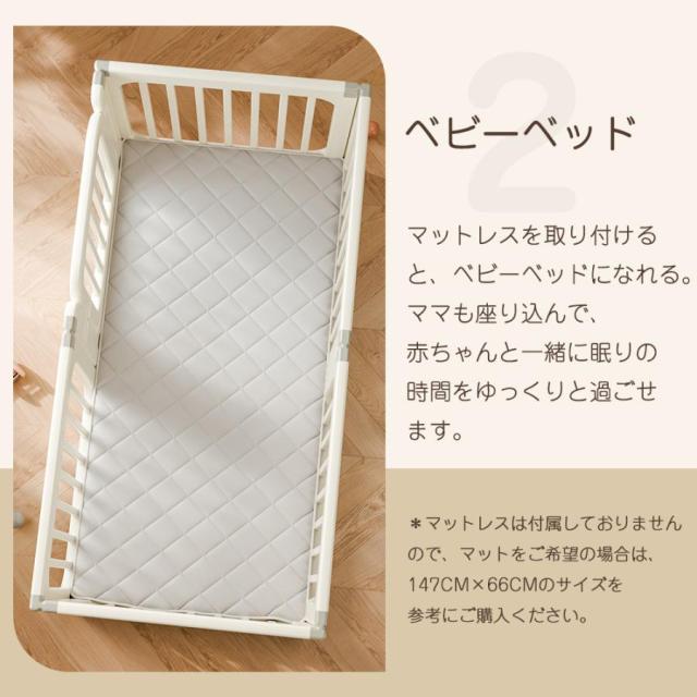 【ベビーベッド】マットレスを取り付けると、ベビーベッドになれる。ママも座り込んで、赤ちゃんと一緒に眠りの時間をゆっくりと過ごせます。*マットレスは付属しておりませんので、マットをご希望の場合は、147CM×66CMのサイズを参考にご購入ください。