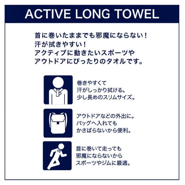 アクティブロングタオル。カラーは、グリーン(4975942427580:FL862GR)、オレンジ(4975942427597:FL862OR)、です。約22x90cmサイズ。首に巻いたままでも邪魔にならない!汗が拭きやすい!アクティブに動きたいスポーツやアウトドアにぴったりのタオルです。巻きやすくて汗がしっかり拭ける。少し長めのスリムサイズ。アウトドアなどの外出に。バッグへ入れてもかさばらないから便利。首に巻いて走っても邪魔にならないからスポーツやジムに最適。