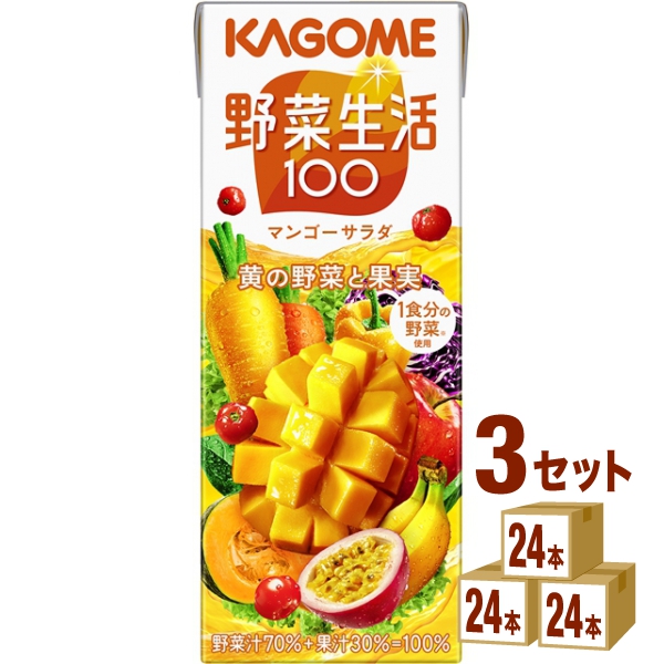 カゴメ 野菜生活100 マンゴーサラダ 200 ml×24 本×3ケース (72本) 飲料