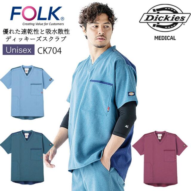 フォーク スクラブ ディッキーズ ck704 ストレッチ 白衣 医療用 病院 ユニフォーム クリニック 術衣 Dickies FOLK