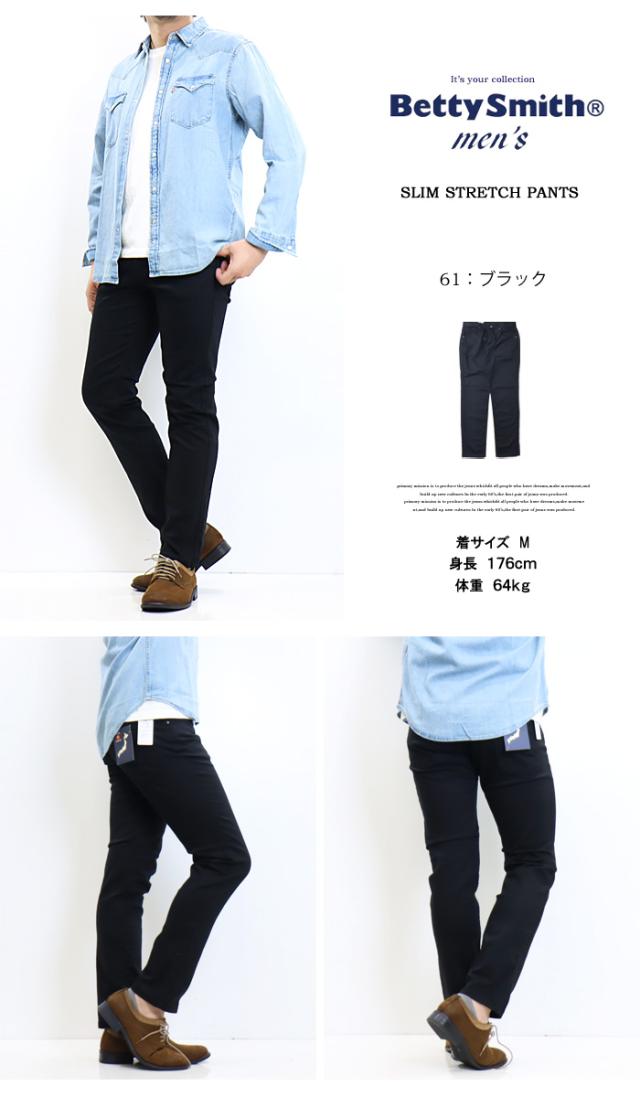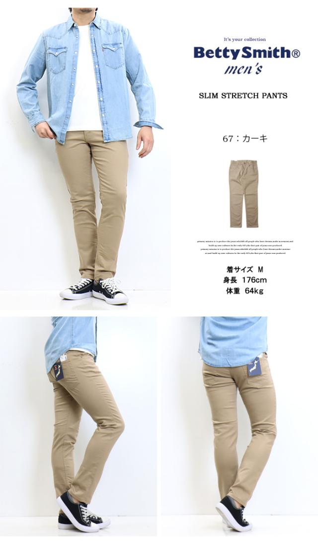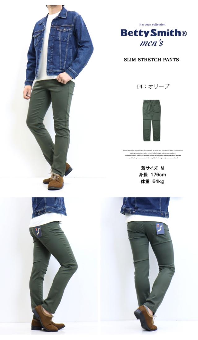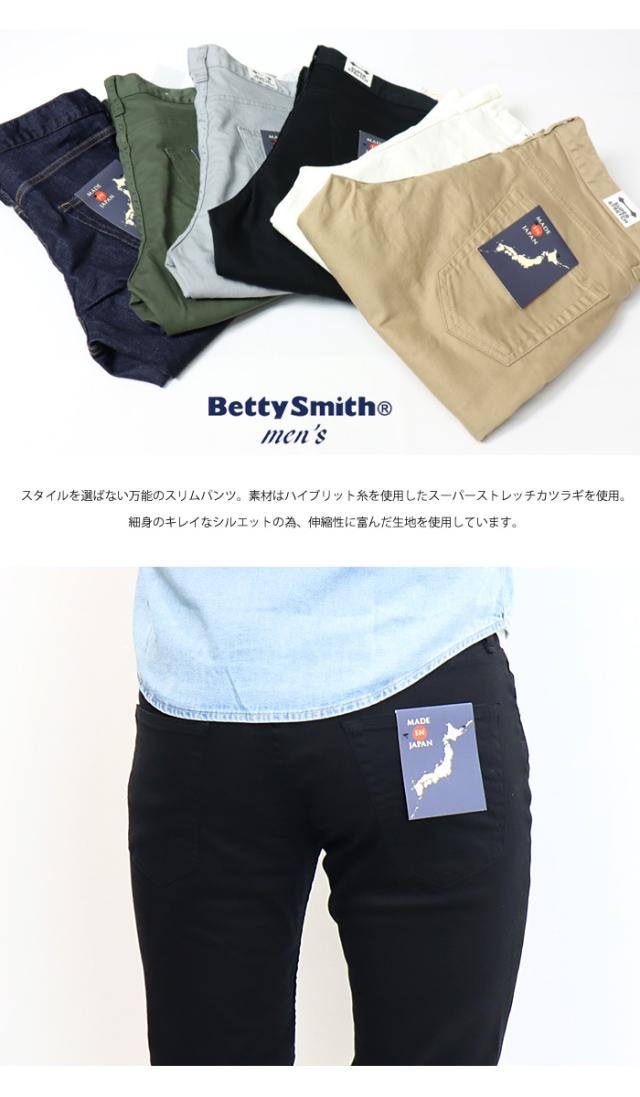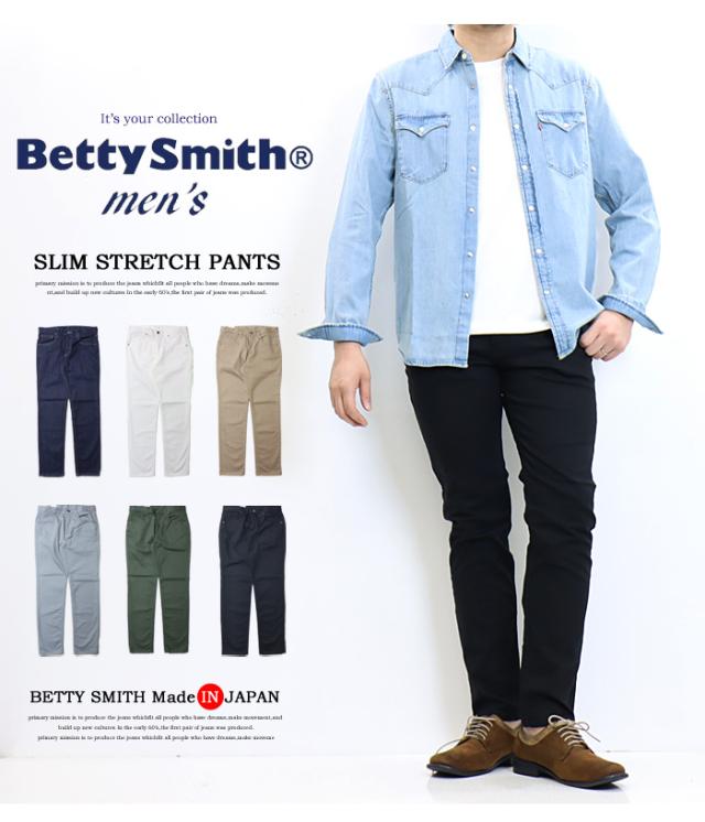 Betty Smith ベティスミス メンズ ストレッチ スリムパンツ 日本製 メンズ テーパード タイトストレート カラーパンツ 送料無料 BSM-187B BSM-187D