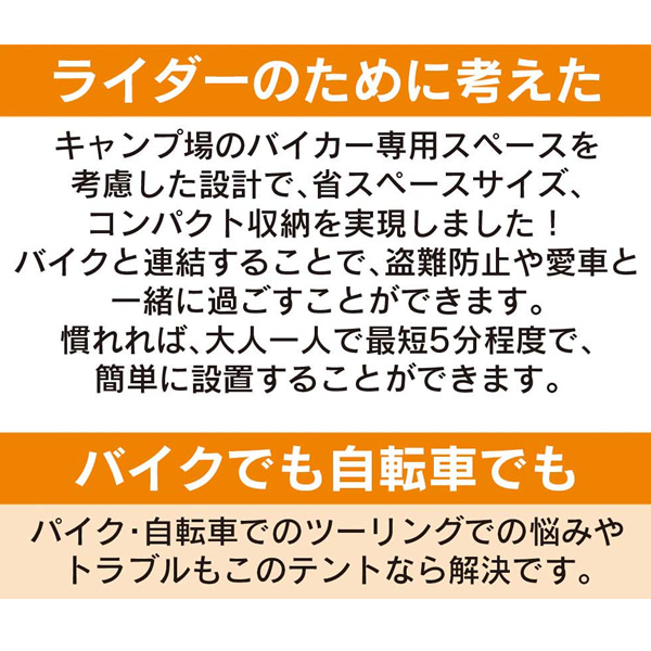 シリーズ名:ツーリングテント バイクテント 一人用 ソロテント ノーポールテント