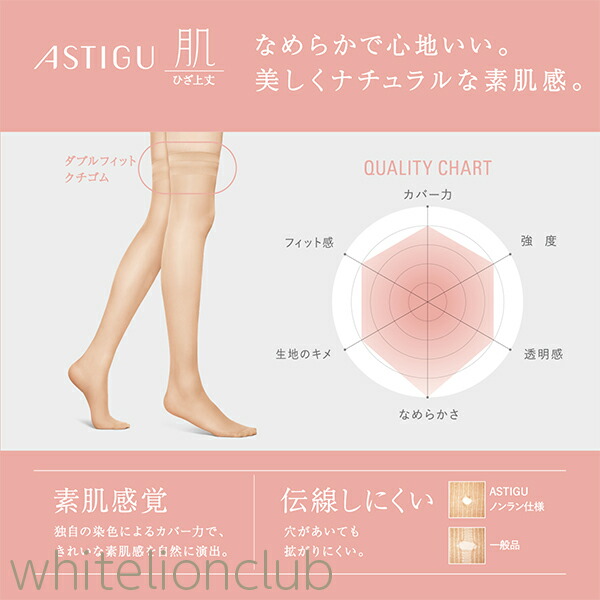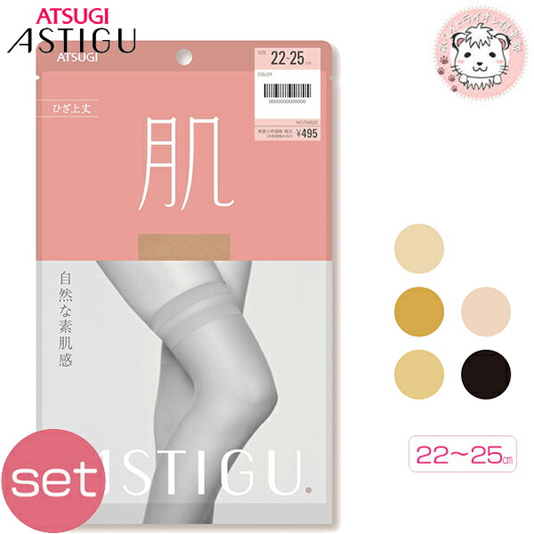 アツギ アスティーグ 肌 自然な素肌感 ひざ上丈 3足セット 22-25cm | 補強トゥ UV対策 吸汗 制菌 ストッキング 太もも丈 オーバーニー F04520 ATSUGI ASTIGU
