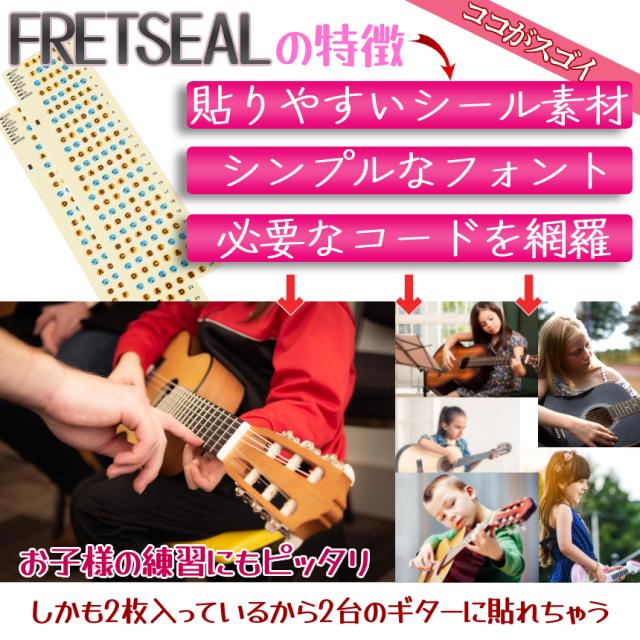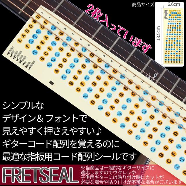 ギター コード シール 指板 練習 フレット 指 コード配列 6弦 貼る 簡単 初心者 板シール フィンガーボード エレキ アコースティック アコギ ステッカー 2枚 guitar 2-FRETSEAL 送料無料