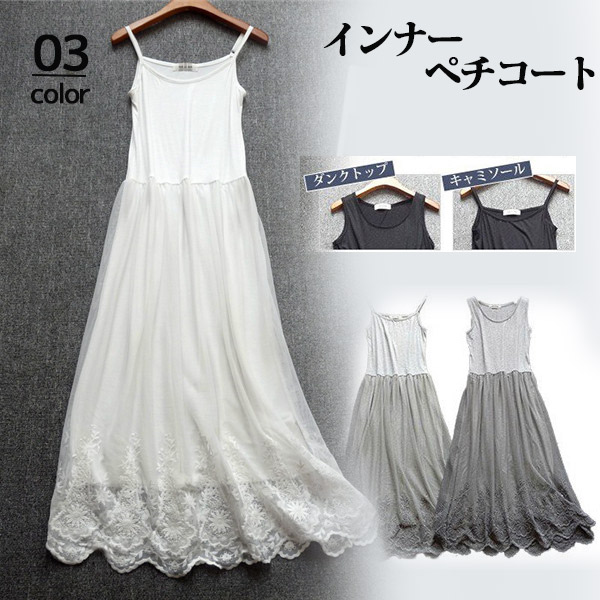 【キーワード】ペチワンピース タンクトップワンピース インナーワンピ キャミソールワンピース ルームウェア 下着 肌着 見せインナー ワンピースインナー 透け防止ワンピ 重ね着風 ノースリーブ 涼しげ 吊りスカート