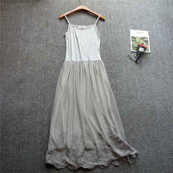 セール中 キャミソール レディース ロング丈 インナーワンピース 下着 重ね着 無地 インナー 透け防止 ミディアム 膝丈 ペチコート