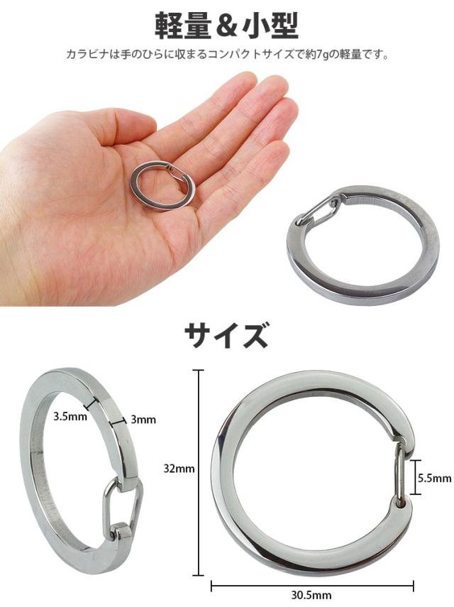 カラビナ 丸型 2個セット リング 円形 光沢 サークル カラビナ キーリング ステンレス 小型 軽量 アウトドア 鍵 PR-CARA20【メール便 送料無料】