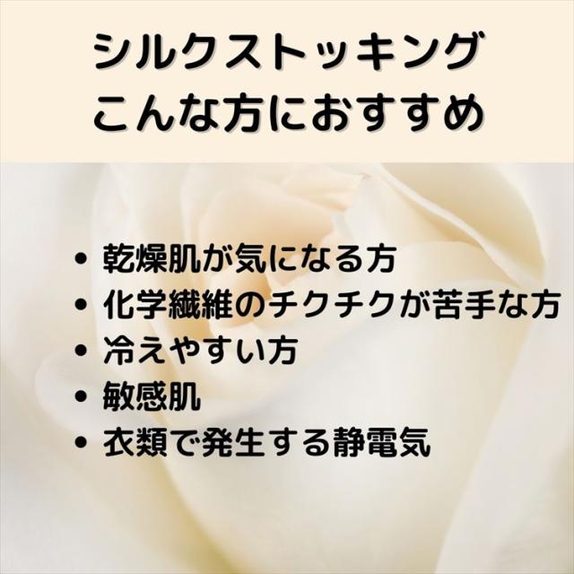 | こんな方におススメ | 化学繊維のチクチクが苦手な方 冷えやすい方 敏感肌 乾燥肌が気になる方 |