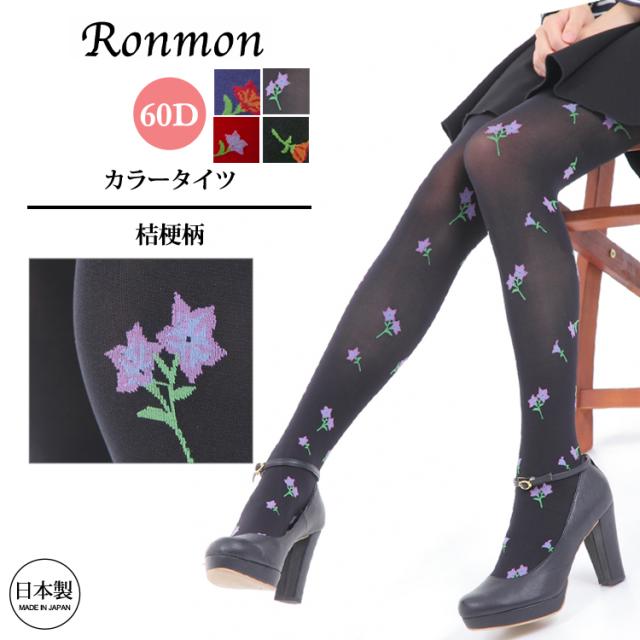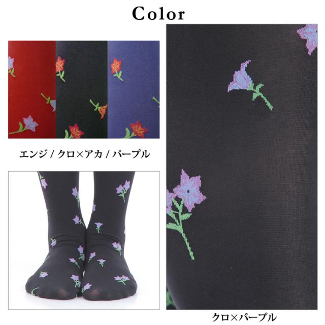 日本製 柄タイツ 桔梗の柄の入った 60デニール タイツ レディース 柄物 柄 総柄 柄タイツ 花 花柄 カラータイツ レッグウェア レッグウエア おしゃれ 可愛い かわいい おしゃれタイツ ナチュラル カジュアル 学生 大人 きれいめ 単品 60D M L 送料無料 春 夏 秋 gt-010