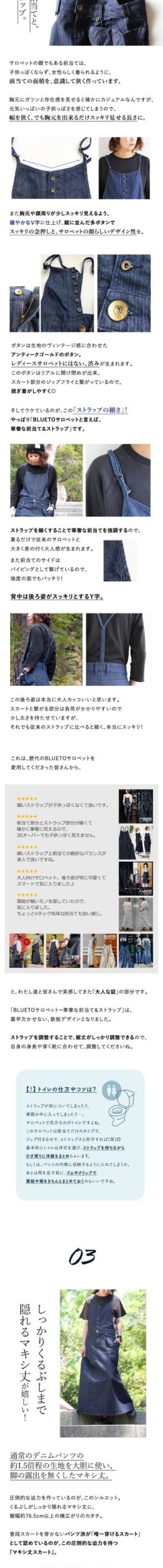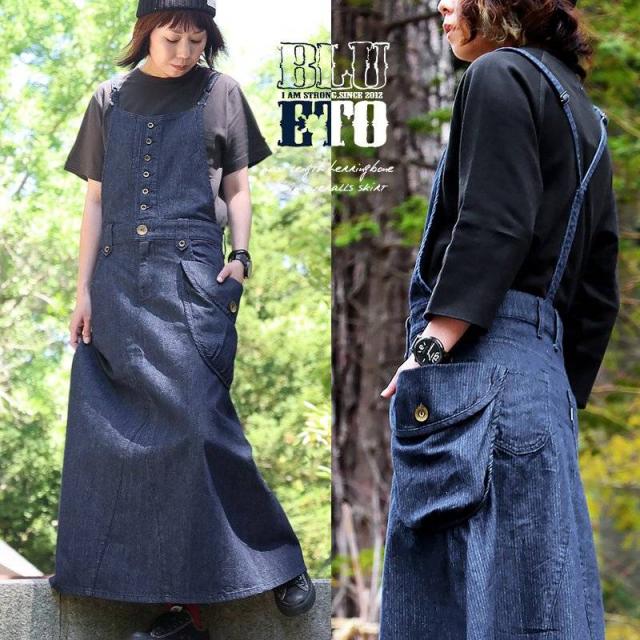 デニム サロペット マキシ レディース 軽い 柔らかい 大きいポケット ヘリンボーン ロング デニムワンピース 裾上げ無料 大きいサイズ かっこいい 大人 カジュアル パティ BLUETO ブルート