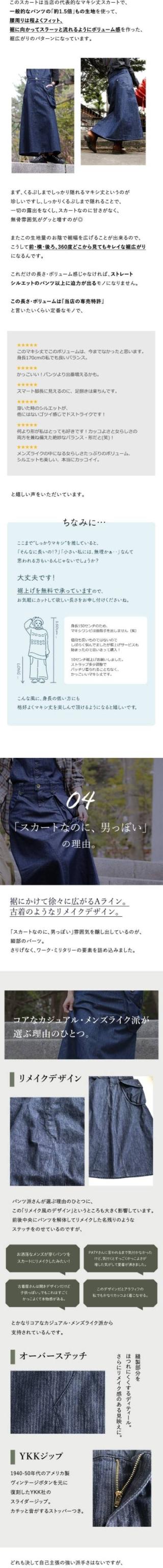 ・通常のデニムパンツの約1.5倍程の生地を大胆に使い、脚の露出を無くしたマキシ丈。