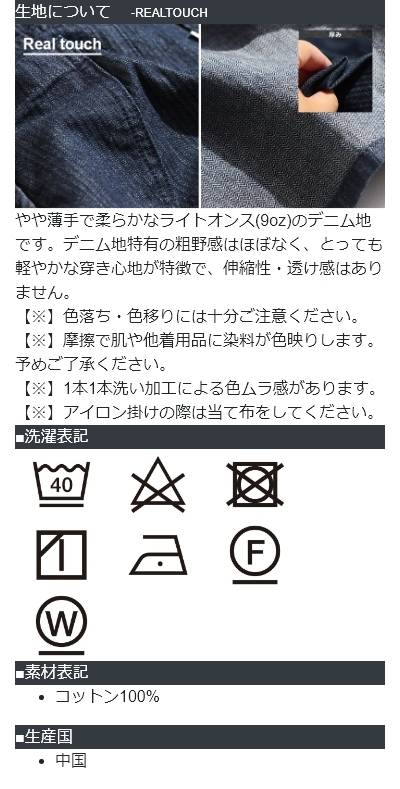 ・薄手で驚くほど軽やかな9オンスの綿100%ノンストレッチデニム。