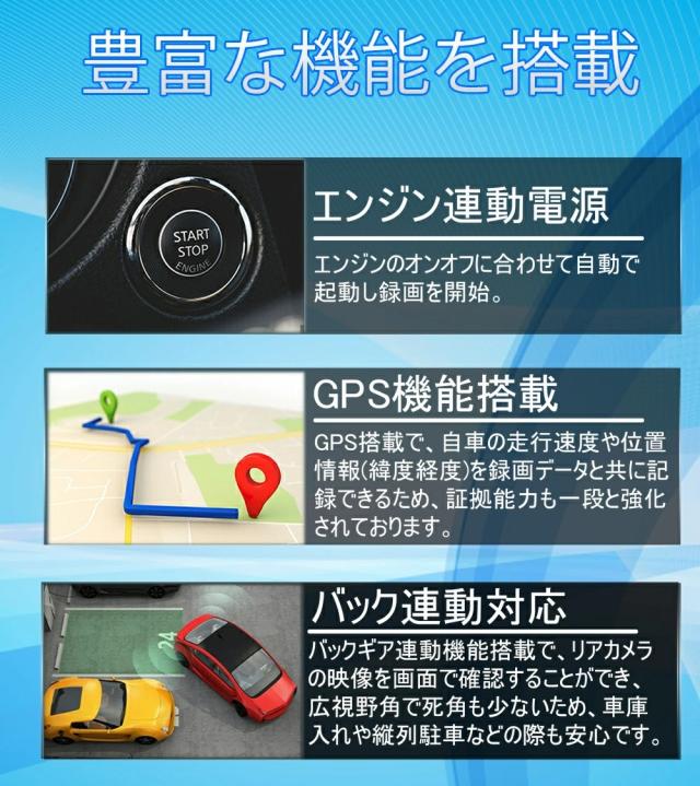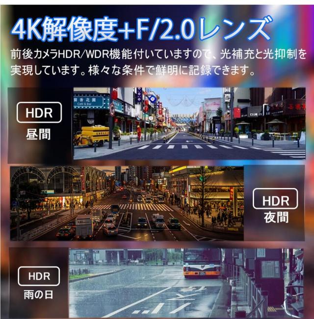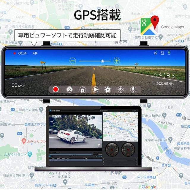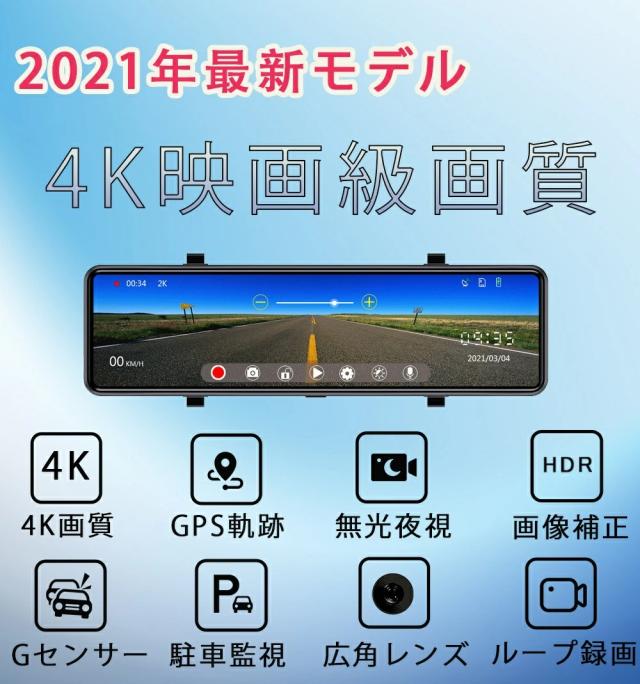 ドライブレコーダー ドラレコ 前後カメラ ミラー型 日本製 センサー 4K 超高画質 超広角 GPS搭載 専用 カメラ仕様 ループ録画 衝撃録画 常時録画 駐車監視 防水 簡単設置 あおり防止 車上荒らし 防犯 送料無料