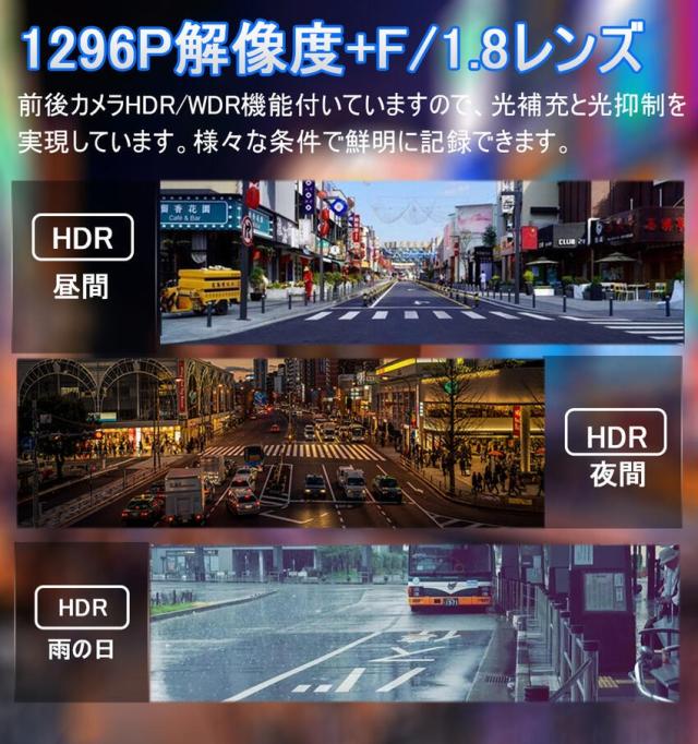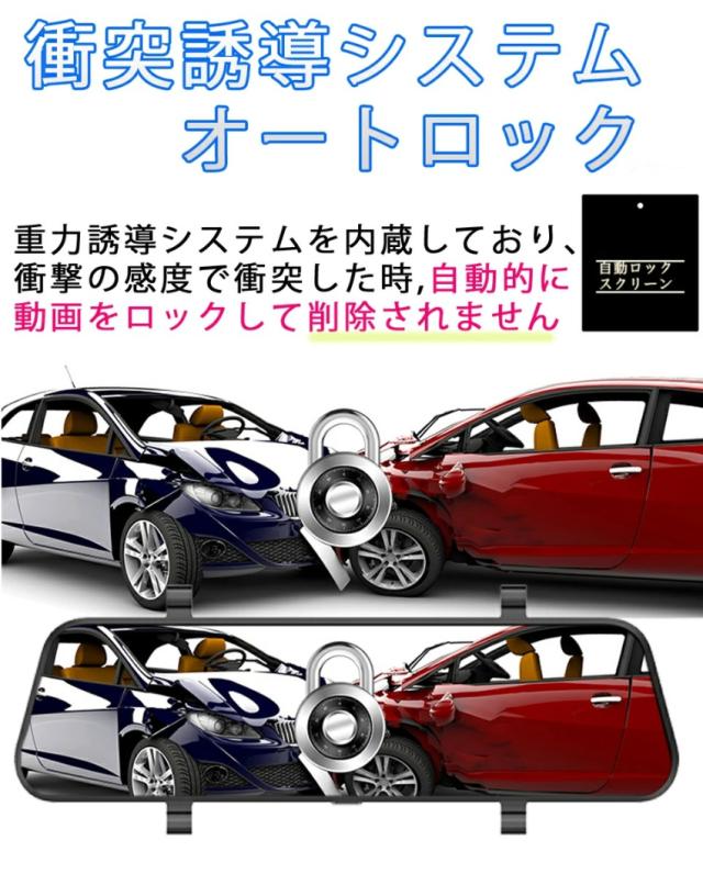 ドライブレコーダー ミラー型 1296P/1440P高画質 10インチ 全面タッチパネル Gセンサー あおり運転対策 交通事故 記録 接触事故 簡単設置 送料無料