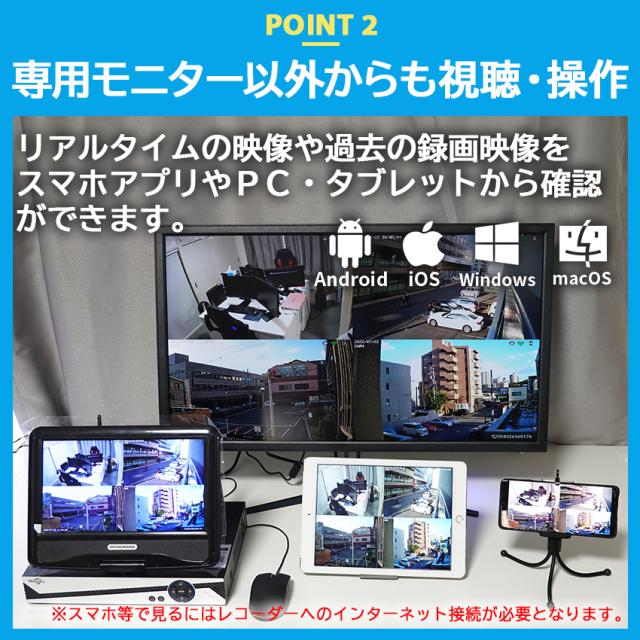 防犯カメラ 防犯カメラ屋外 ワイヤレス 工事不要 家庭用 録画機能付き 防犯カメラセット 4台 セット 監視カメラ カメラ レコーダー Wi-Fi モニター付き 300万画素 500万画素 防水 防犯 自動録画 遠距離