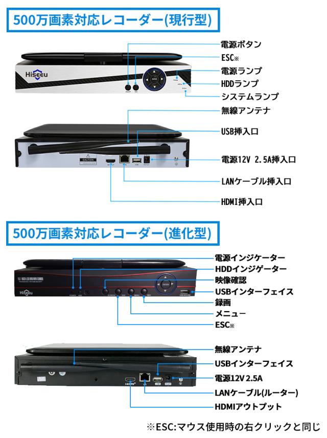 ・NVR本体の電源は12V2Aをご利用下さい。