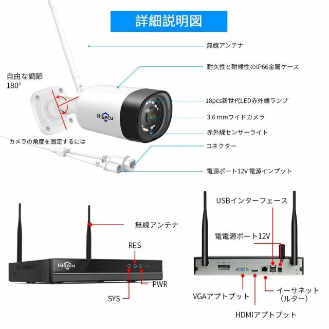 防犯カメラ 屋外 防犯カメラ屋外 ワイヤレス 工事不要 家庭用 4台 セット 録画機能付き 防犯カメラセット ネット環境なし レコーダー モニター Wi-Fi 監視カメラ カメラ ワイヤレス防犯カメラ スマホ 連動 自動録画 録画 屋内 屋内カメラ 録画機能