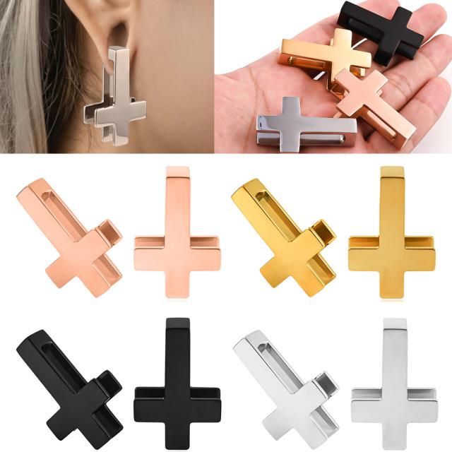 逆さまに十字架をひっかけるように装着する面白いステンレス製のボディーピアス。