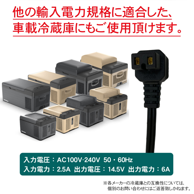 当ストアで販売している車載冷蔵庫に対応している交換用シガーソケット対応ACケーブルです。