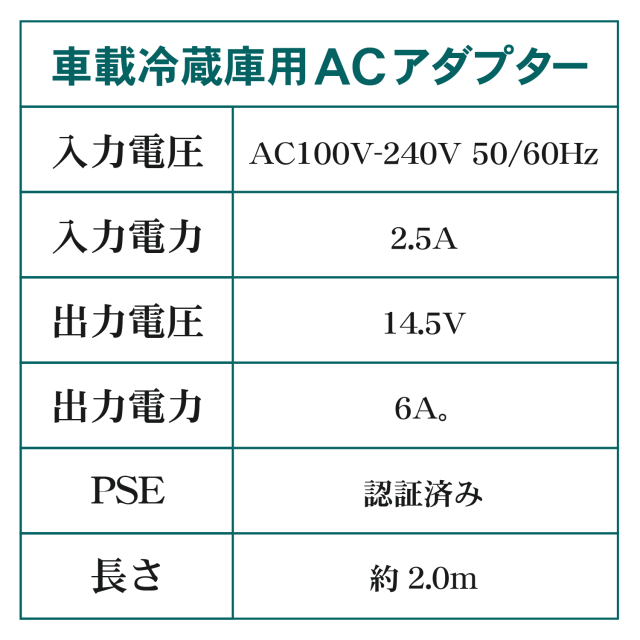 PSE 認証済み 車載冷蔵庫 専用 ACアダプター ACコード AC100V-240V 2m 車載 冷蔵庫 冷凍庫 専用 交換用 AC 車載用冷蔵庫 ポータブル冷蔵庫 アダプタ