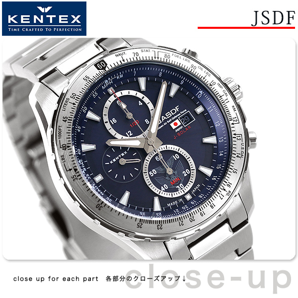 ケンテックス 航空自衛隊 クロノグラフ 日本製 ソーラー メンズ 腕時計 S802M-01 Kentex ダークブルー