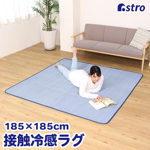 アストロ ラグ ブルー系 縞模様 185×185cm 約2畳相当 洗える カーペット 接触冷感 すべり止め付き 333-04