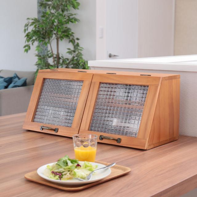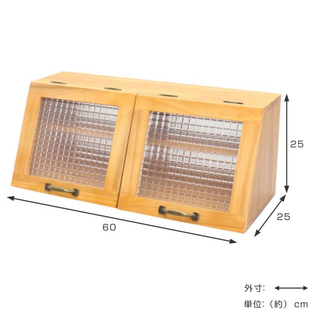 ブレッドケース Showcase 木製 幅60cm 高さ25cm ( キッチン 収納 パンケース ブレッドボックス 調味料収納 小物収納 ショーケース パン 食パン 入れ 食器収納 収納ラック 調味料ラック 収納ケース 食パンケース 北欧 )